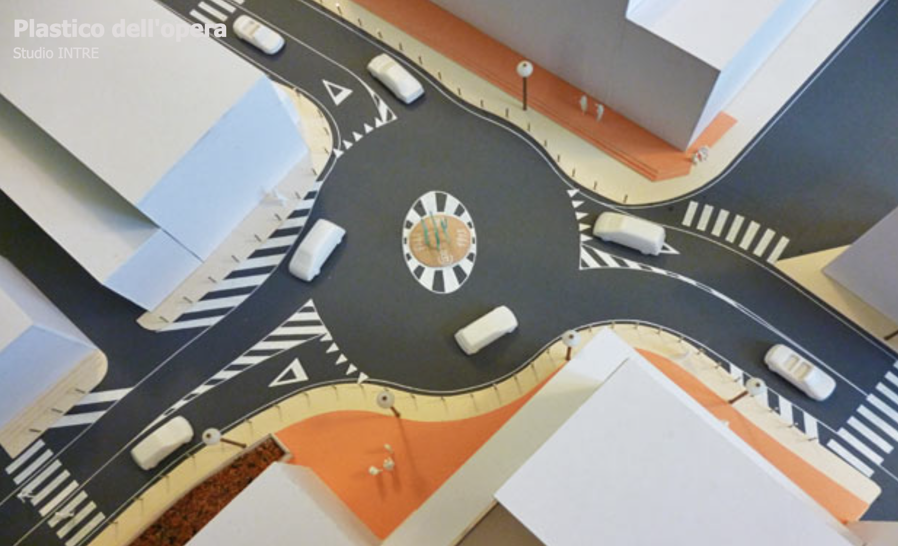 I lavori consistono nella modifica della viabilità attuale mediante la rimozione dell’impianto semaforico e da demolizione di porzione di resede esterna concessa a titolo gratuito dalla proprietà BPL Real Estate al fine di migliorare la sicurezza stradale e ridurre l’inquinamento acustico ed atmosferico. L’isola centrale è caratterizzata dalla presenza di una fontana e di un opera architettonica finanziata anche con il contributo dell’azienda Lucart Group.